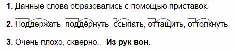 Поддержать, поддёрнуть, ссыпать, оттащить, оттолкнуть.