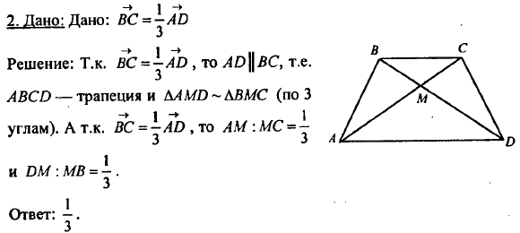 В четырехугольнике ABCD BC — 1/3 AD. В каком отношении диагонали этого четырехугольника делятся точкой