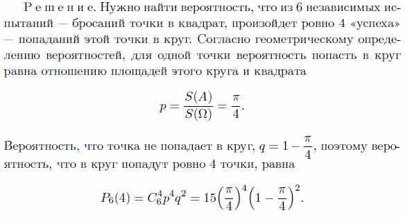 В единичный квадрат вписан круг. В квадрат случайным образом бросают 6 точек. Найти вероятность того,