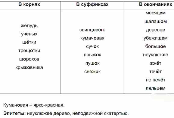 Вставьте пропущенные буквы. Выпишите из данных предложений слова с орфограммой «Буквы о — ё (е) после шипящих и ц», распределив их по колонкам таблицы.