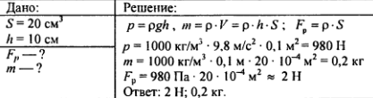 В мензурку, площадь дна которой 20 см2 , налита вода до высоты 10 см. сколько граммов воды налито? Чему равно давление воды на дно мензурки?