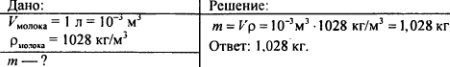 Какую массу имеет литровый пакет молока (упаковку не учитывать)?