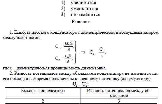 диэлектрик удалили из конденсатора. Как при этом изменится ёмкость конденсатора и разность потенциалов между его обкладками
