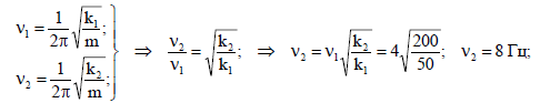 4 Гц. С какой частотой будет совершать колебания этот же груз, если его подвесить к пружине жёсткостью k2 = 200 Н/м?
