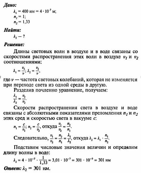 Длина волны фиолетовых лучей света в воздухе 400 нм. Какова длина волны этих лучей в
