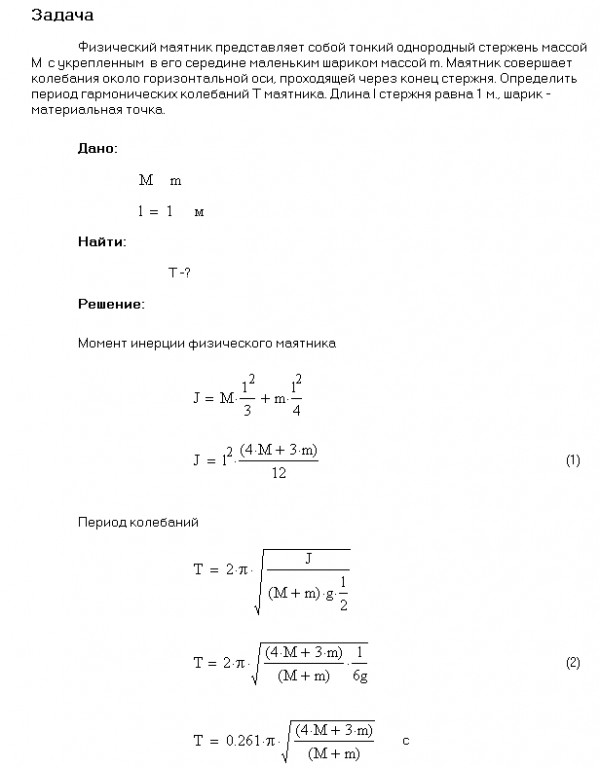 Физический маятник представляет собой тонкий однородный стержень массой m с укрепленным на нем маленьким шариком массой m. Маятник