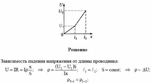 таким образом, что одна из клемм вольтметра все время подключена к началу проводника, а вторая может перемещаться вдоль проводника. На рисунке приведена зависимость показаний вольтметра U от расстояния х до начала проводника. Как зависит от х удельное сопротивление проводника? Ответ поясните, указав, какие физические закономерности вы использовали.