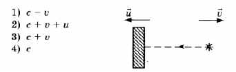 в этой системе со скоростью v, а зеркало — со скоростью и в противоположную сторону. С какой скоростью распространяется в этой системе отсчета свет, отраженный от зеркала?