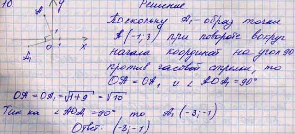 Найдите координаты образа точки А (-1; 3) при повороте вокруг начала координат на угол 90°