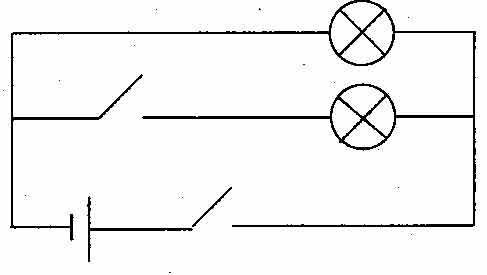 Предложите схему цепи, в которой две лампы и два ключа, причем лампу Л1 включает и