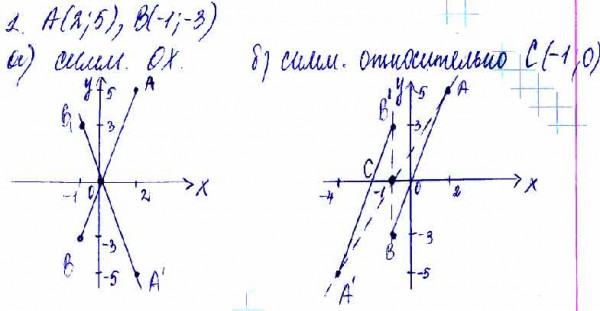 Даны точки А(2; 5) и В(-1; -3). Постройте фигуру, симметричную отрезку АВ относительно: