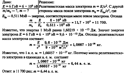 Ускоритель Ереванского физического института позволяет получать электроны с энергией 6 ГэВ. Во сколько раз масса