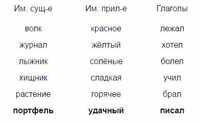Волк, красное, жёлтый, лежал, хотел, солёные, болел, журнал, лыжник, сладкая, хищник, учил, горячее, растение, брал.