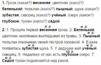 2. Спиши предложения. Определи род имен прилагательных.