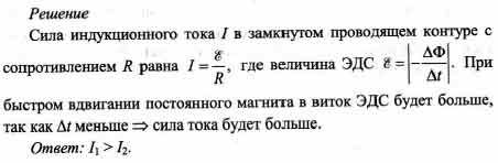 В проволочный виток вдвигают постоянный магнит: один раз быстро, второй раз медленно. Сравните значения возникающего