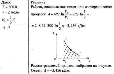 Два моля идеального газа сжимаются изотермически при температуре Т = 300 К до половины первоначального
