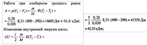 температуры Т2 = 490 К. Какую работу совершает газ при этом нагревании? Найдите изменение его внутренней энергии