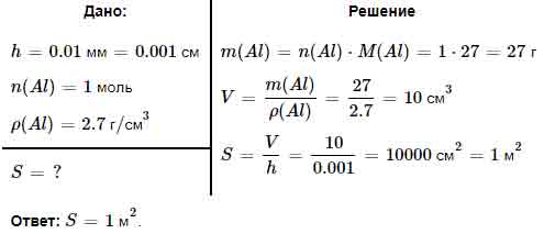 Рассчитайте площадь алюминиевой фольги толщиной 0,01 мм, которую можно из готовить из 1 моль этого