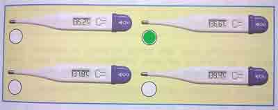 3) Отметьте (закрасьте кружок), на каком дисплее электронного термометра показана нормальная температура.