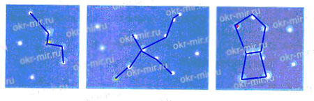 С помощью рисунков учебника соедини точки так, чтобы получились схемы созвездий Кассиопея, Лебедь, Орион.